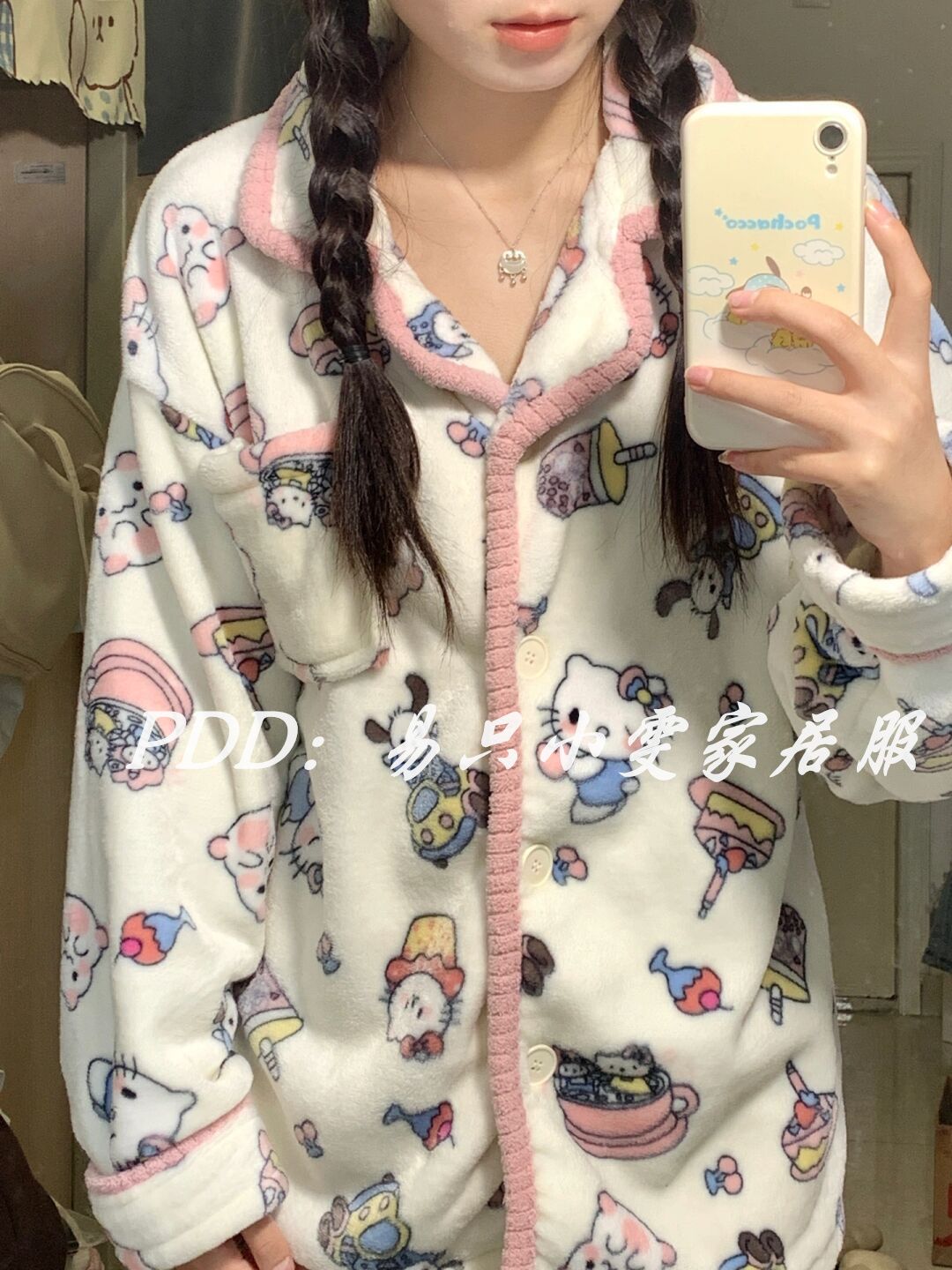 秋冬新款珊瑚绒加绒加厚女生高颜值外穿家居服套装