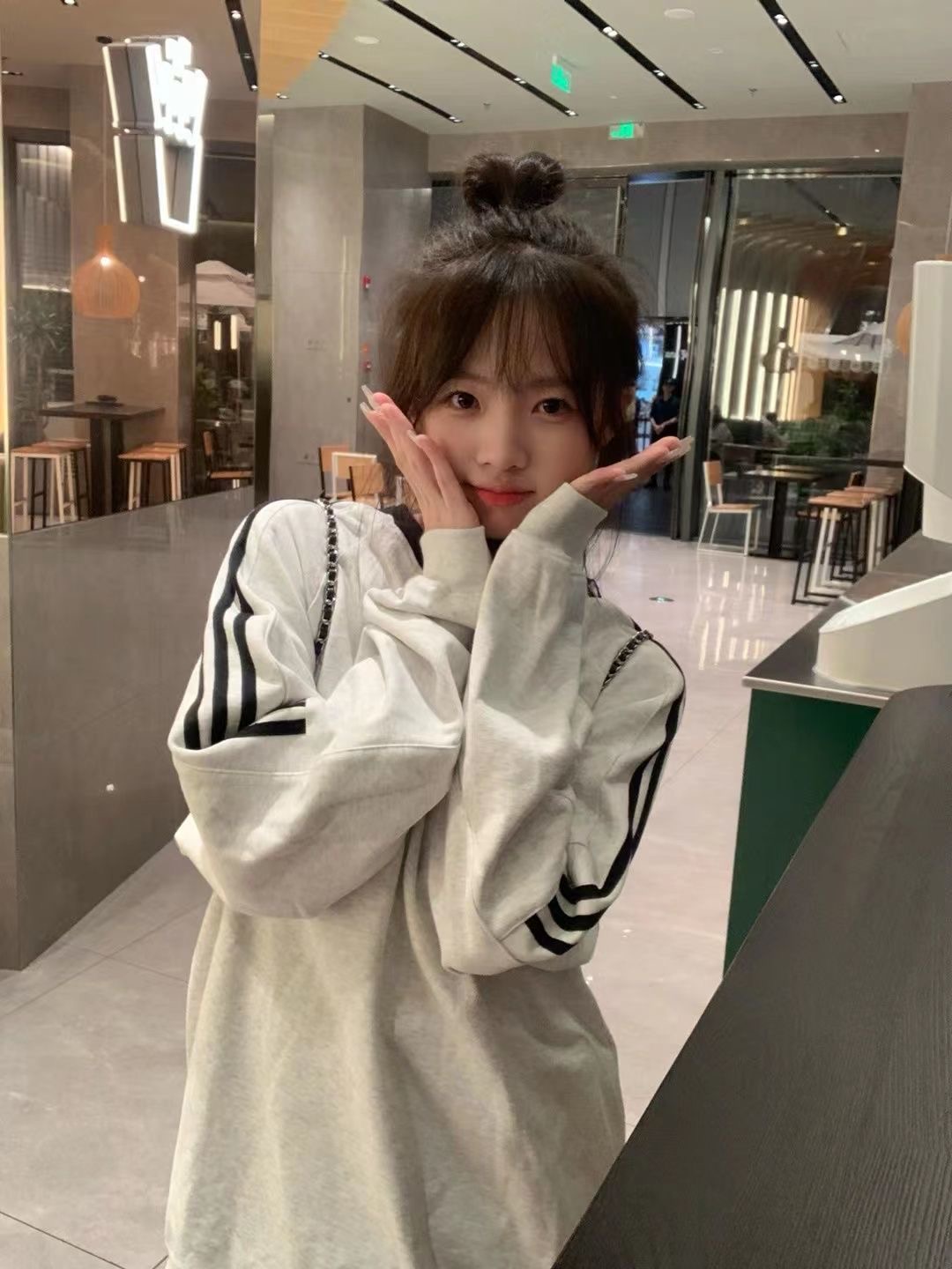 美式复古三条杆圆领长袖薄款卫衣女春秋无帽2023新款oversize上衣