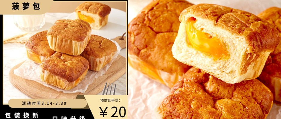 比比赞(BIBIZAN)港式菠萝包黄油味整箱早餐小吃夹心零食休闲美食糕点心600g