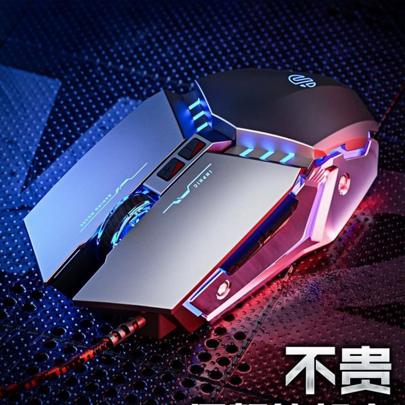 英菲克PW2有线鼠标电竞宏笔记本游戏台式 usb家用网吧静音无声机械