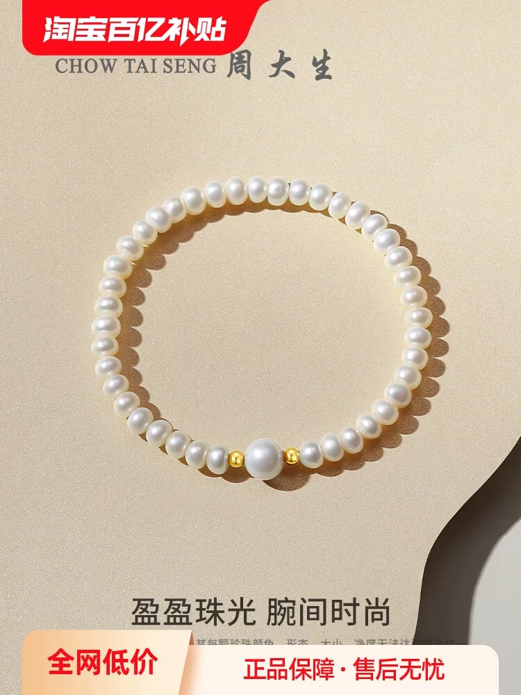 周大生淡水珍珠手链女精致手串珠弹力绳手饰520情人节礼物送女友