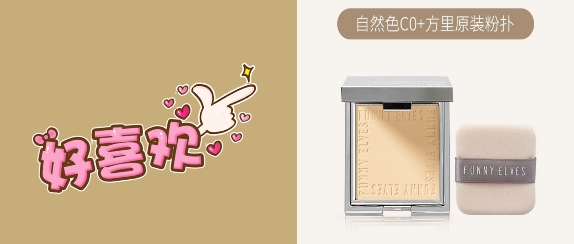 funnyelves粉饼方里柔焦蜜粉饼FE持久定妆防水控油遮瑕隐匿毛孔