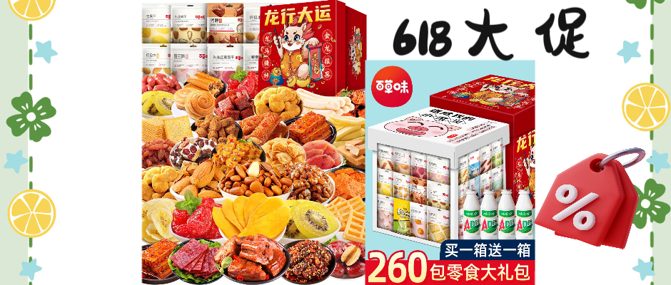 百草味零食大礼包整箱送女友生日休闲食品小吃六一儿童节礼物2024