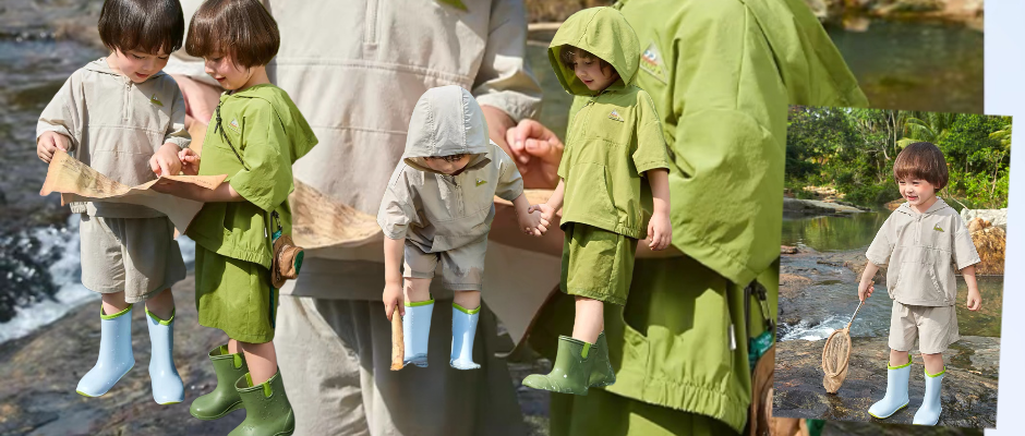 男童夏装山系户外连帽短袖套装