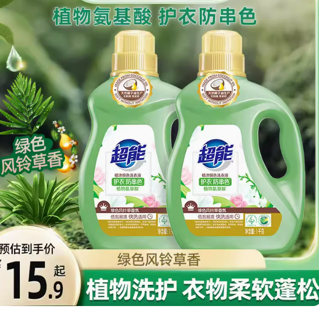 超能洗衣液植沐悦色1kg家用整箱批实惠装持久留香