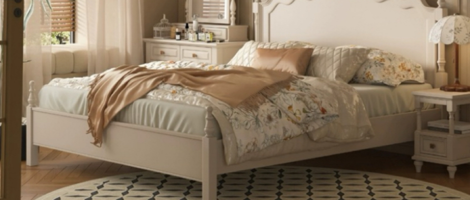 法式奶油风复古实木床主卧婚床2024新款1.8米双人床美式大床家具