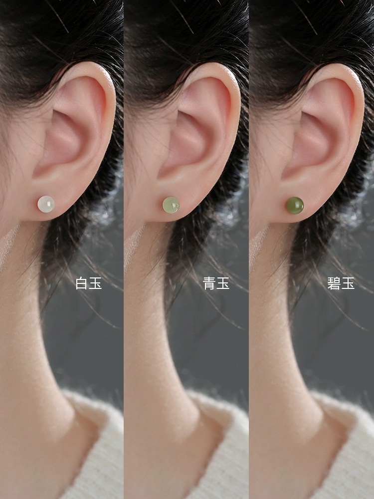 925纯银和田玉耳钉2024年爆款耳环女小众高级轻奢耳饰