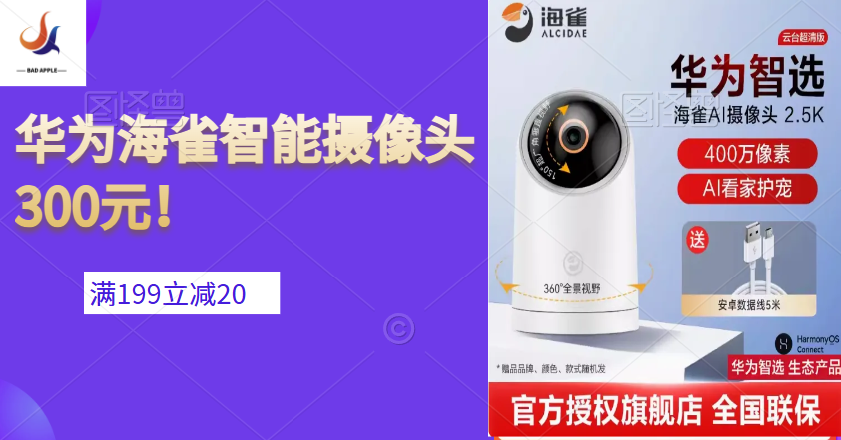 【阿果优选】华为智选海雀智能监控摄像头高清360度家用室内远程手机可对话老人宠物AI全景无线可视云台夜视#