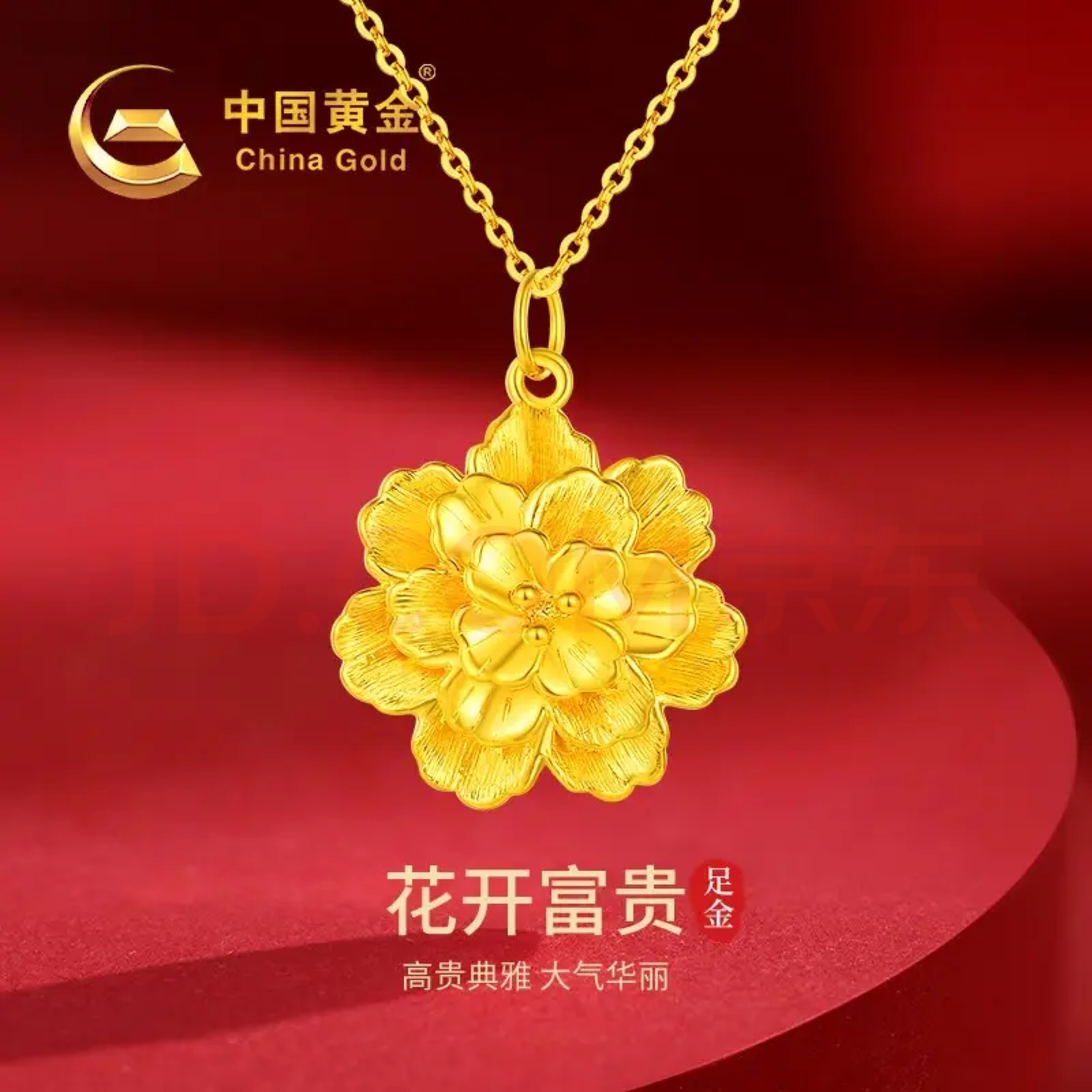 中国黄金(CHINA GOLD)足金999雪花黄金吊坠女黄金项链节日生日礼物送女友老婆妈妈