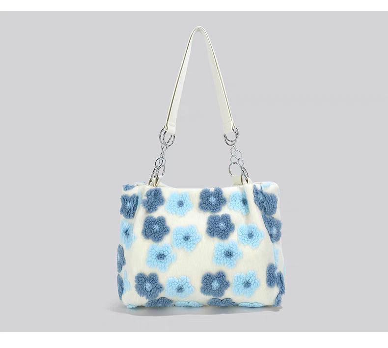有紫色,粉红色,蓝色等,颜色多种,适合冬季背,可单肩背可手提,日常冬季毛毛包