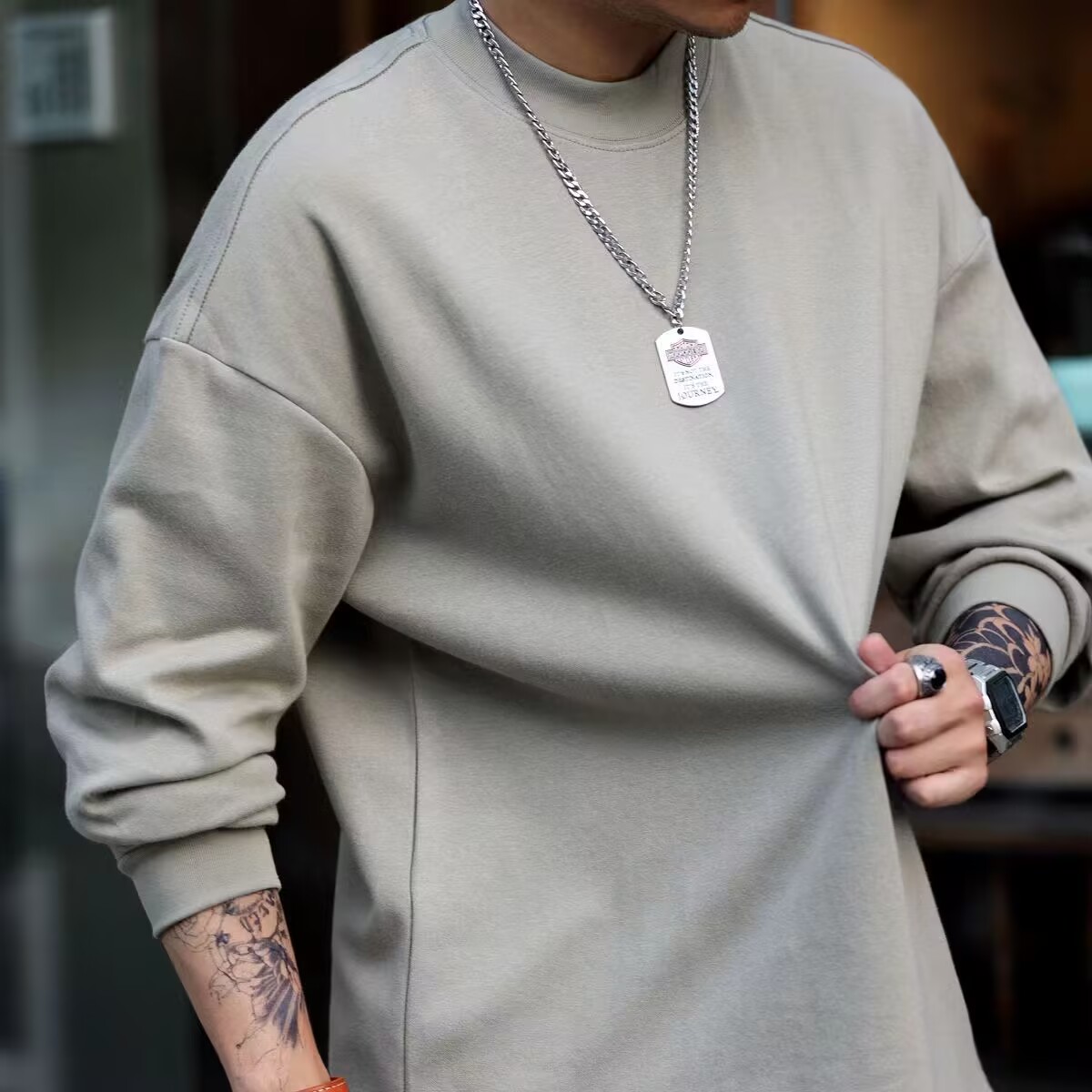 重磅300G纯棉长袖T恤秋冬男女打底衫纯色圆领宽松内搭秋衣情侣衫
