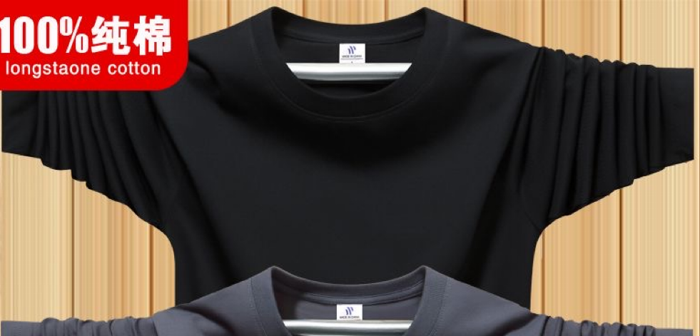 100%新疆纯棉男士长袖春秋新款圆领大码宽松潮流纯色打底秋衣1/2