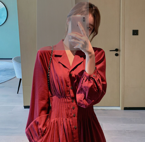 秋装2020年新款女长袖连衣裙衬衫式酒红色收腰显瘦气质过膝长裙子