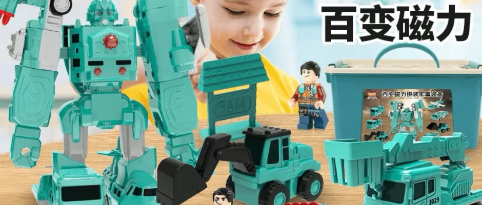 【孩子的礼物】儿童百变磁吸机器人拼装接工程车变形益智玩具