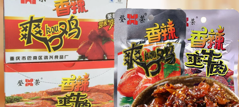 登荣香辣爽口鸡零食辣子鸡丁爽牛肉口水鸡麻辣条重庆特产小吃荣登