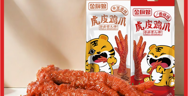 金厨娘虎皮凤爪网红独立包装卤香鸡爪散装香辣鸡脚卤味小零食整箱