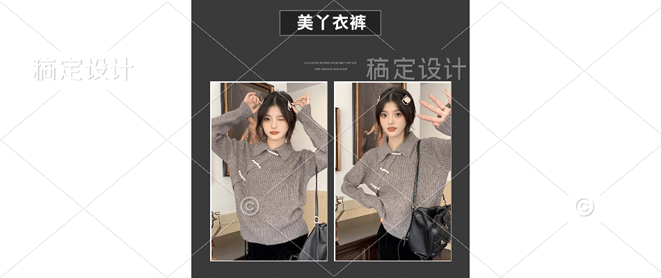 韩系假两件针织衫长袖女2024年秋冬设计感宽松百搭灰色上衣女冬季