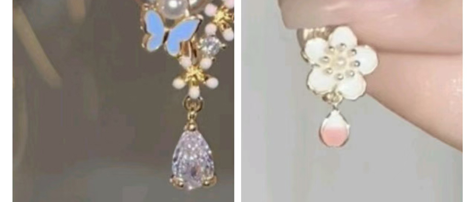 主图5普鲁士蓝山茶 春夏新款花朵耳钉小巧精致甜美气质耳环无耳洞耳夹