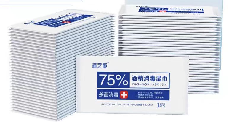 75%酒精消毒湿巾独立便携装一次性酒精湿纸巾免洗杀菌100片