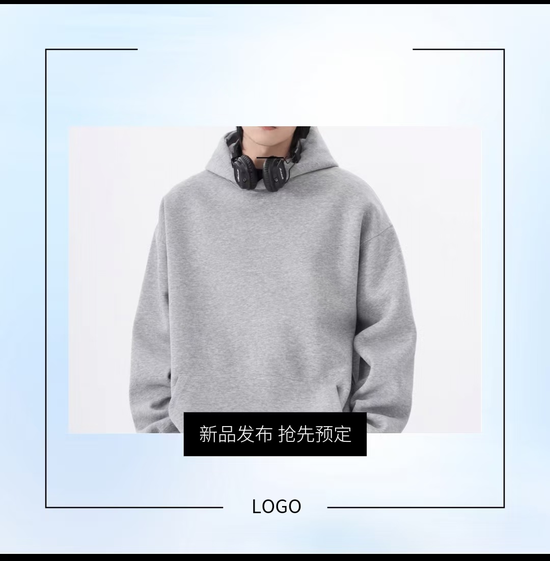 秋冬新款连帽卫衣男女秋季潮牌宽松oversize纯色灰色情侣帽衫外套