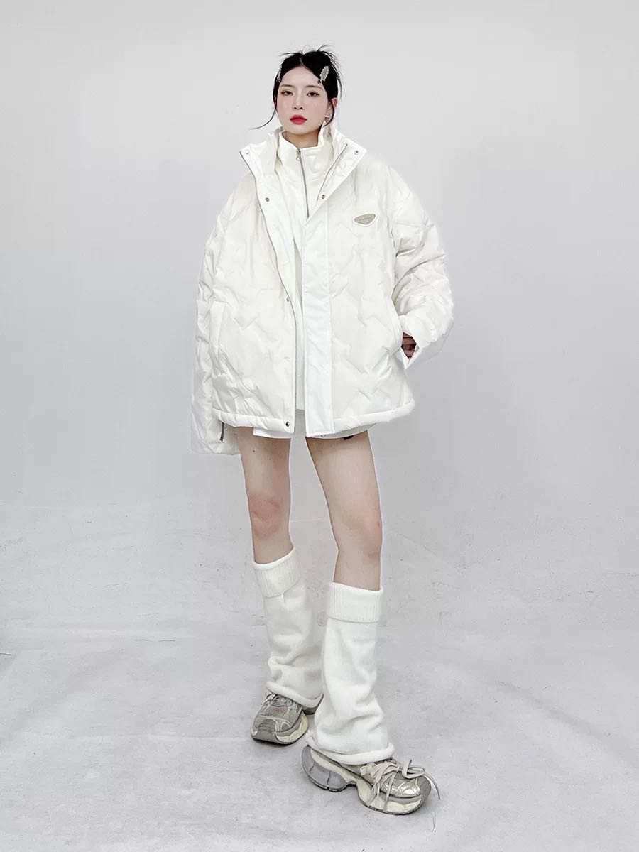 CEDY潮流时尚立领简约百搭外套女2024冬季加厚白色压印菱格羽绒服