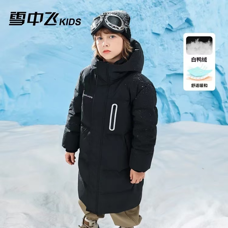 雪中飞90白鸭绒儿童中长款羽绒服 带原版吊牌+防伪 高含绒量 防寒保暖w