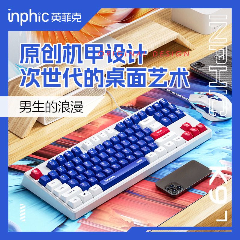 英菲克K9二代有线键盘游戏台式电脑笔记本办公网吧电竞拼色发光