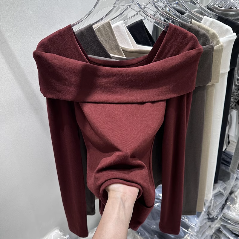 德绒纯欲辣妹修身露肩一字领小心机秋冬新款长袖打底衫T恤女上衣