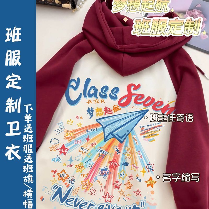 手绘纸飞机班服定制纯棉短袖T恤初高中学生运动会毕业连帽卫衣diy