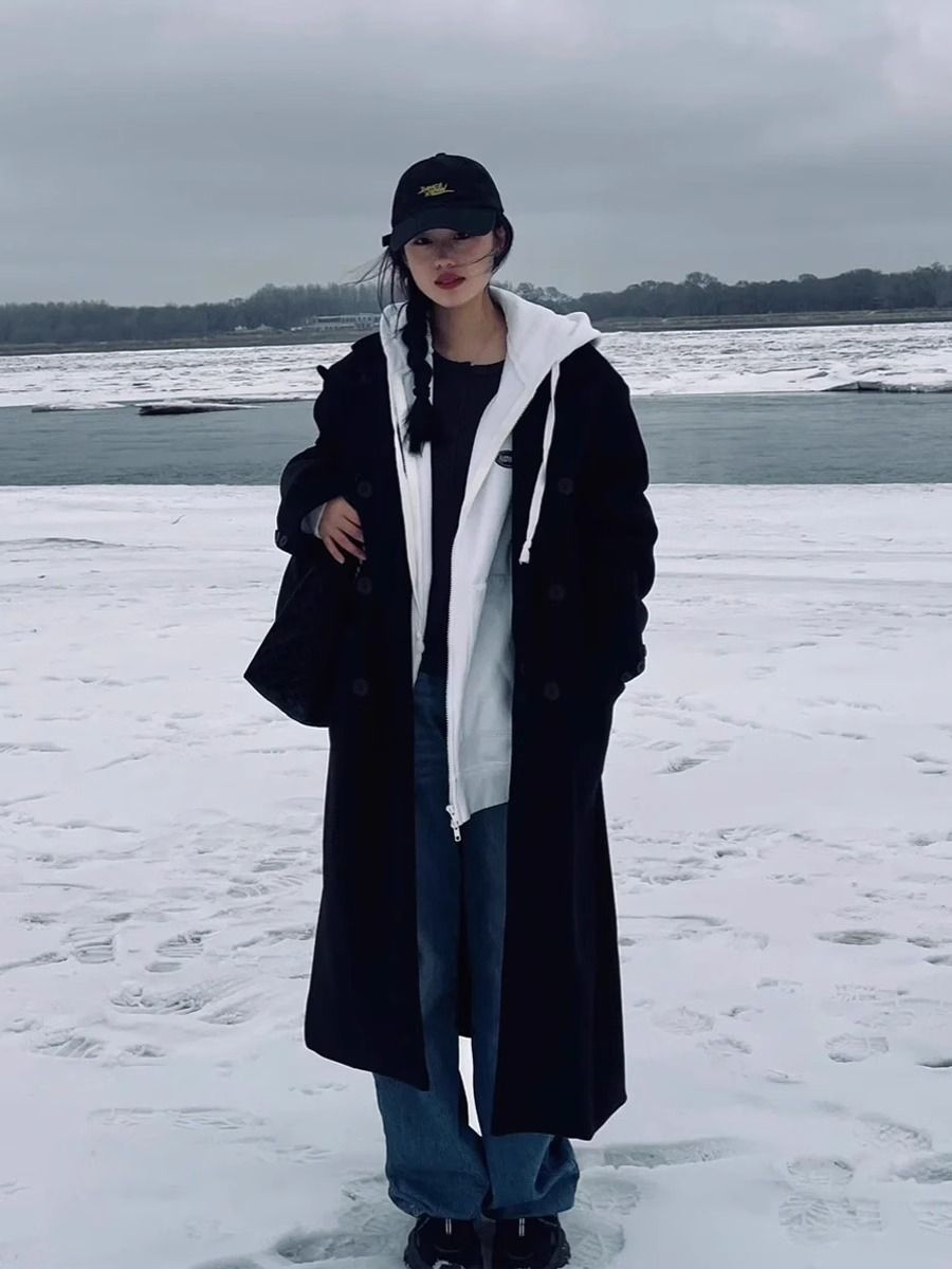 黑色毛呢外套女2024秋冬新款美拉德韩系赫本风气质加厚呢子大衣潮