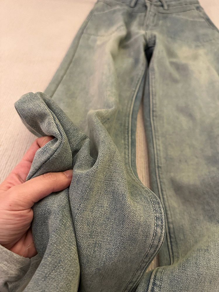 美式加绒加厚做旧水洗显瘦阔腿牛仔裤女冬季新款直筒宽松拖地长裤