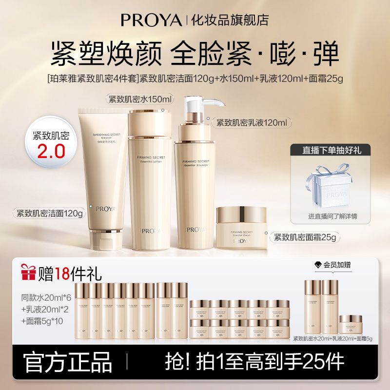 珀莱雅紧致肌密洁面水乳液面霜套装2.0淡纹抗皱提拉修护保湿舒缓