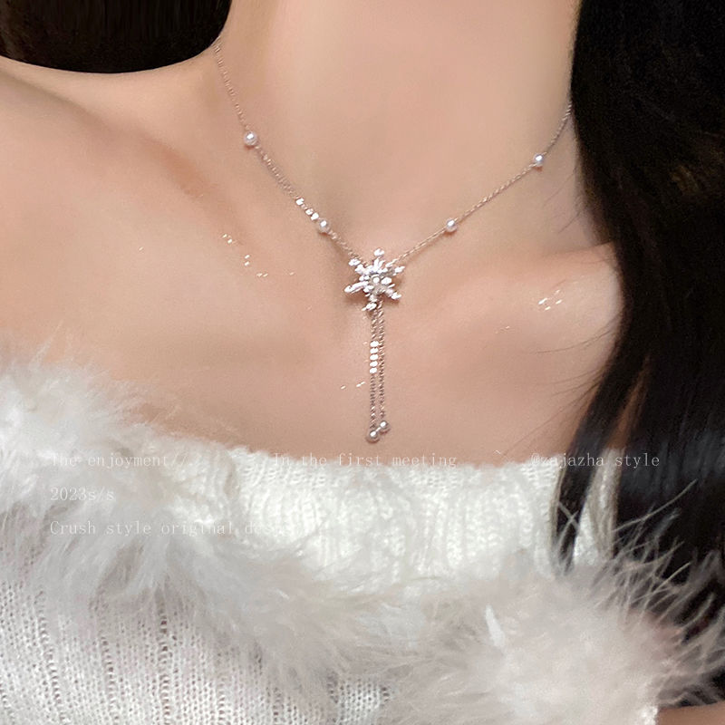 珍珠雪花流苏项链女秋冬时尚洋气百搭网红配饰轻奢小众长款毛衣链
