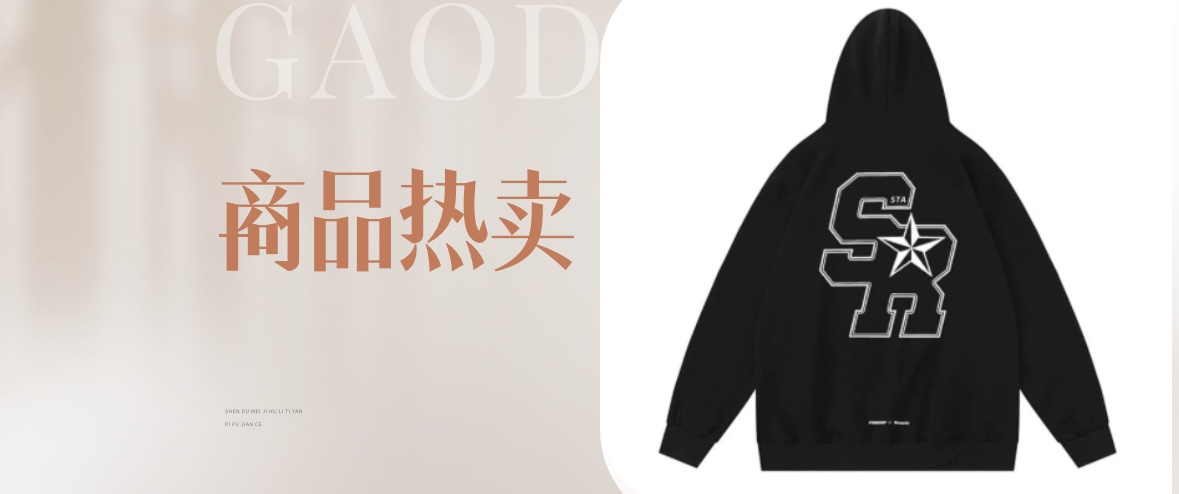 STA SR国潮美式休闲连帽卫衣男女潮牌宽松套头加绒情侣藏青色外套