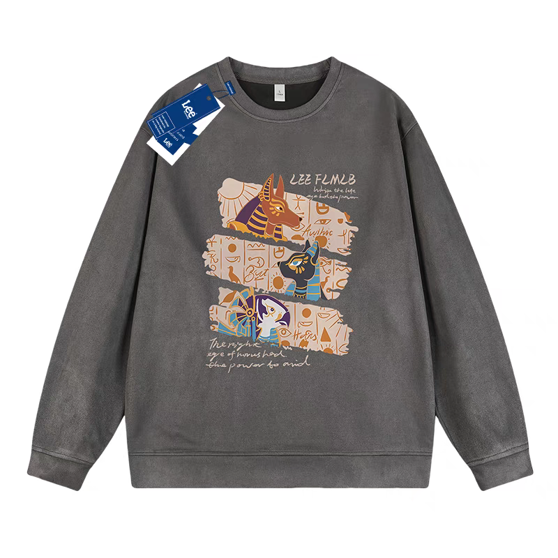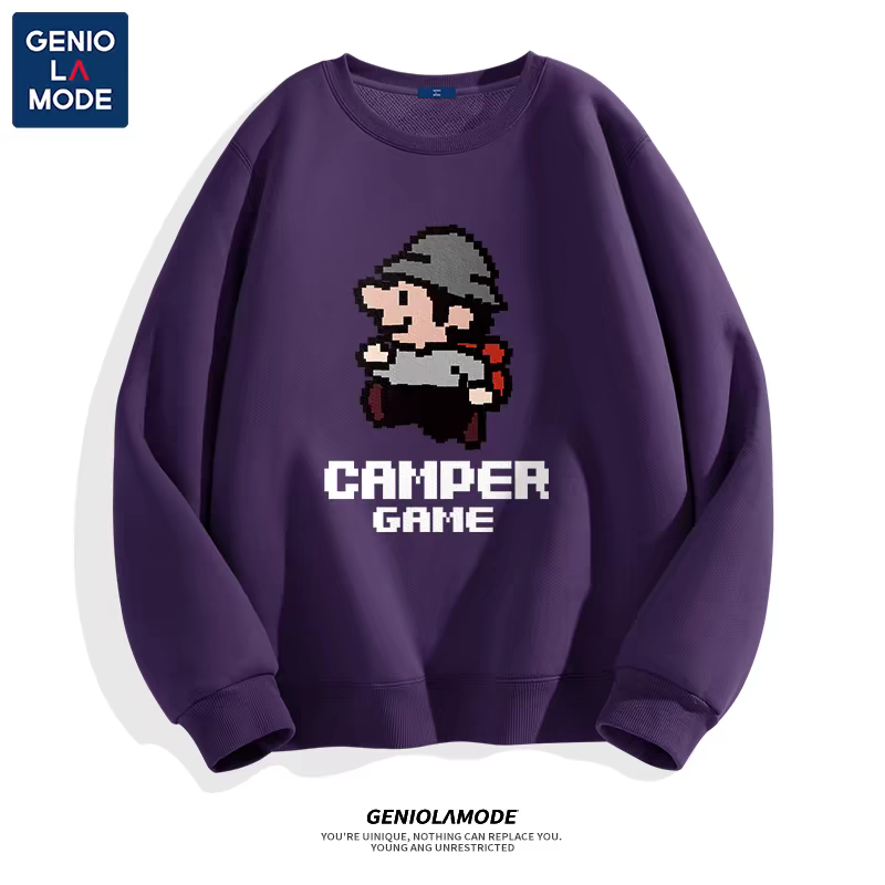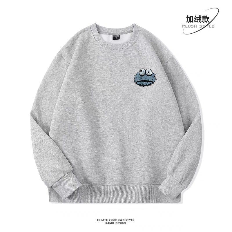 圆领卫衣男春秋款卡通简约无帽秋季加绒加厚潮牌复古百搭宽松上衣