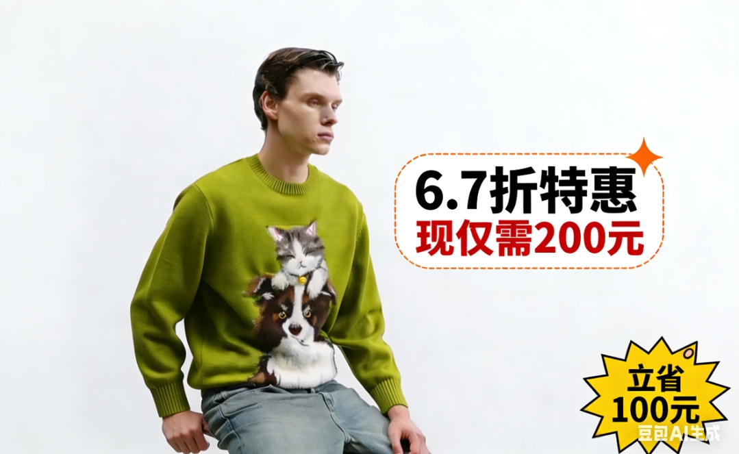 UR2025冬新款男装趣味休闲萌宠图案圆领针织衫情侣毛衣