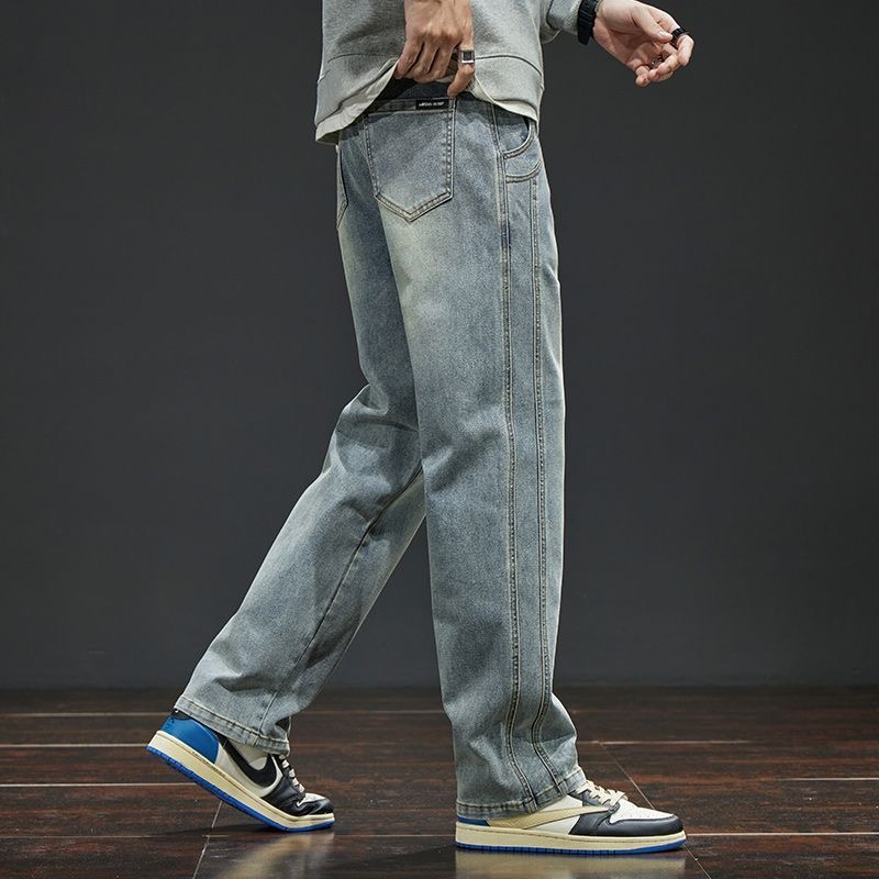复古牛仔裤男士宽松直通阔腿裤春秋款