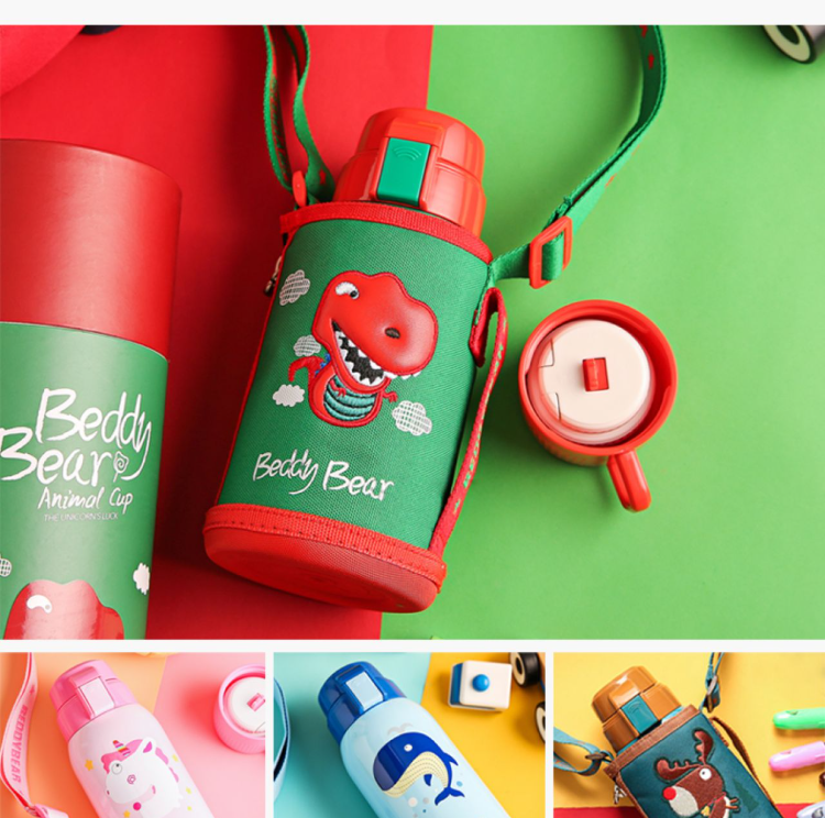 杯具熊儿童保温杯带吸管两用水壶女童婴儿小学生男宝宝幼儿园水杯 升级316不锈钢 官方正品