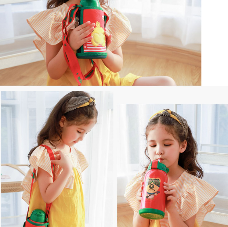 杯具熊儿童保温杯带吸管两用水壶女童婴儿小学生男宝宝幼儿园水杯 升级316不锈钢 官方正品 终身置换