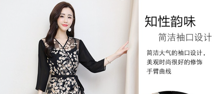 连衣裙V领高腰套头2018年春季长袖中长款时尚都市青春流行百搭修身