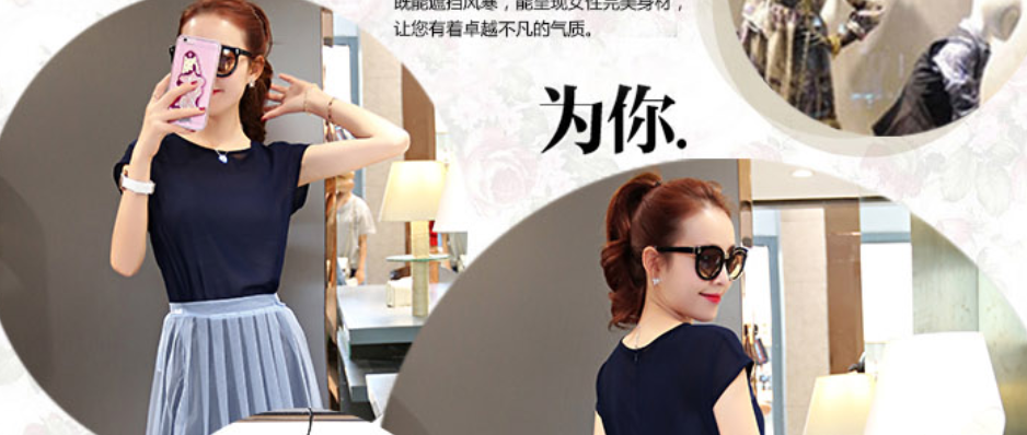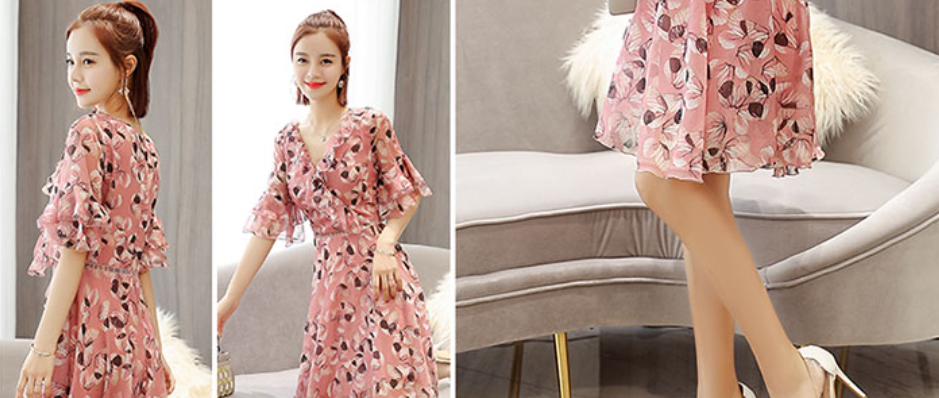 大摆型舒适甜美优雅套头高腰荷叶袖夏季短袖中裙连衣裙