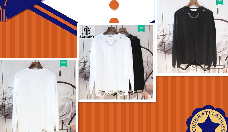 男士秋装上衣服装冬季宽松长袖t恤国潮流INS港风破洞内搭项链卫衣