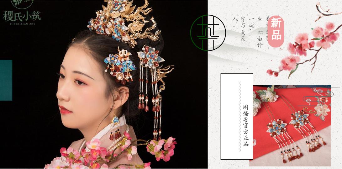 定制 稷氏小筑 福蝶 原创古风头饰发饰女明制烧蓝汉服发钗簪子边夹发夹