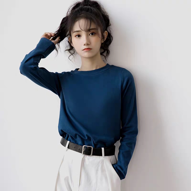 2020新款蓝色长袖t恤女打底衫