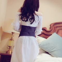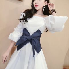 2020春秋新款女装时尚甜美性感露肩洋气一字肩连衣裙仙女超仙裙子 白色 L XL